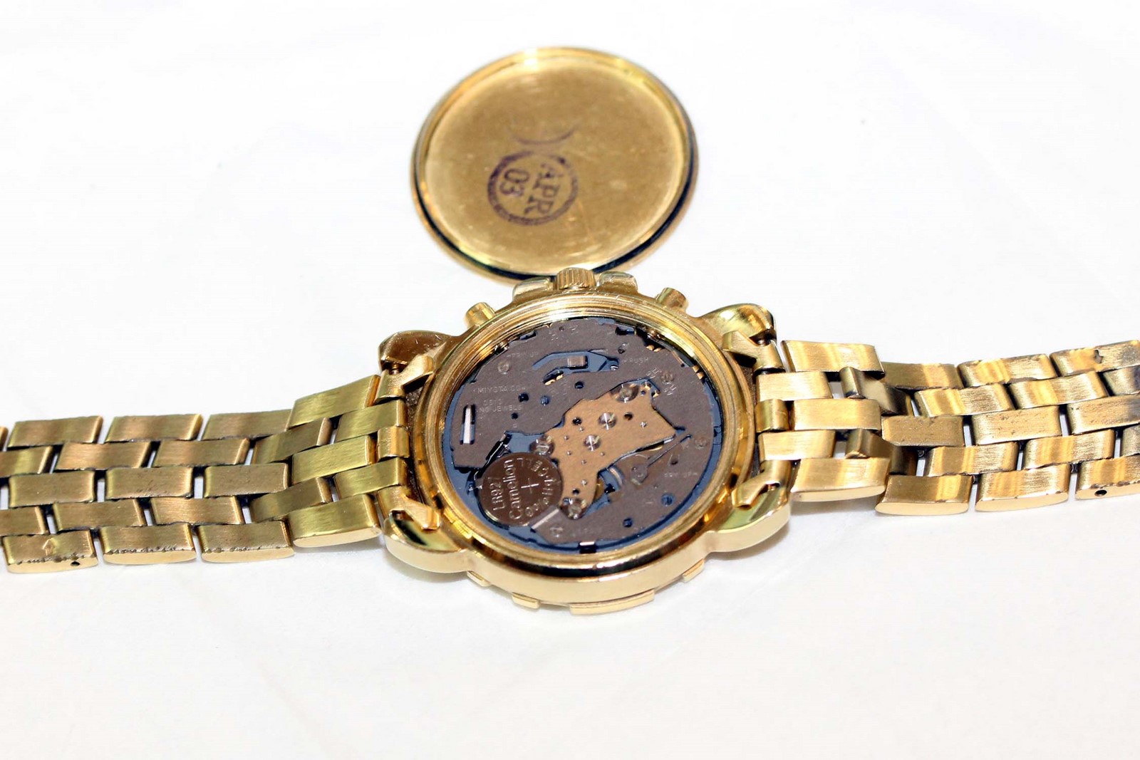 Dann habe ich den Boden der Armbanduhr aufgeschraubt.
