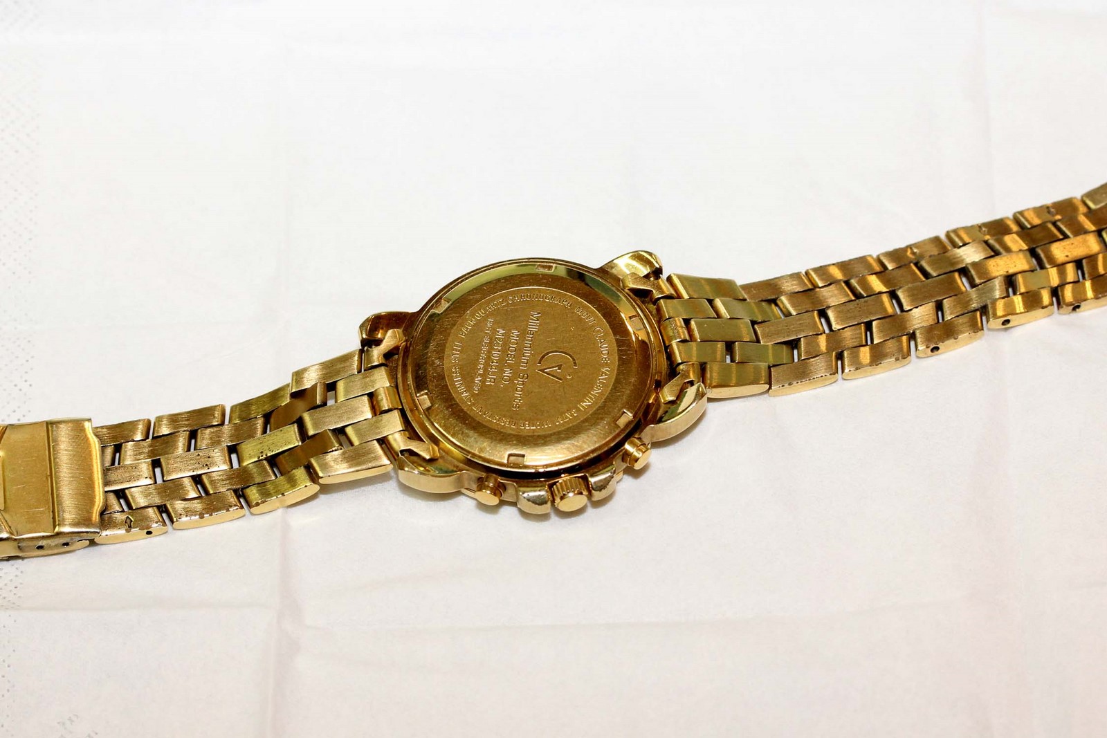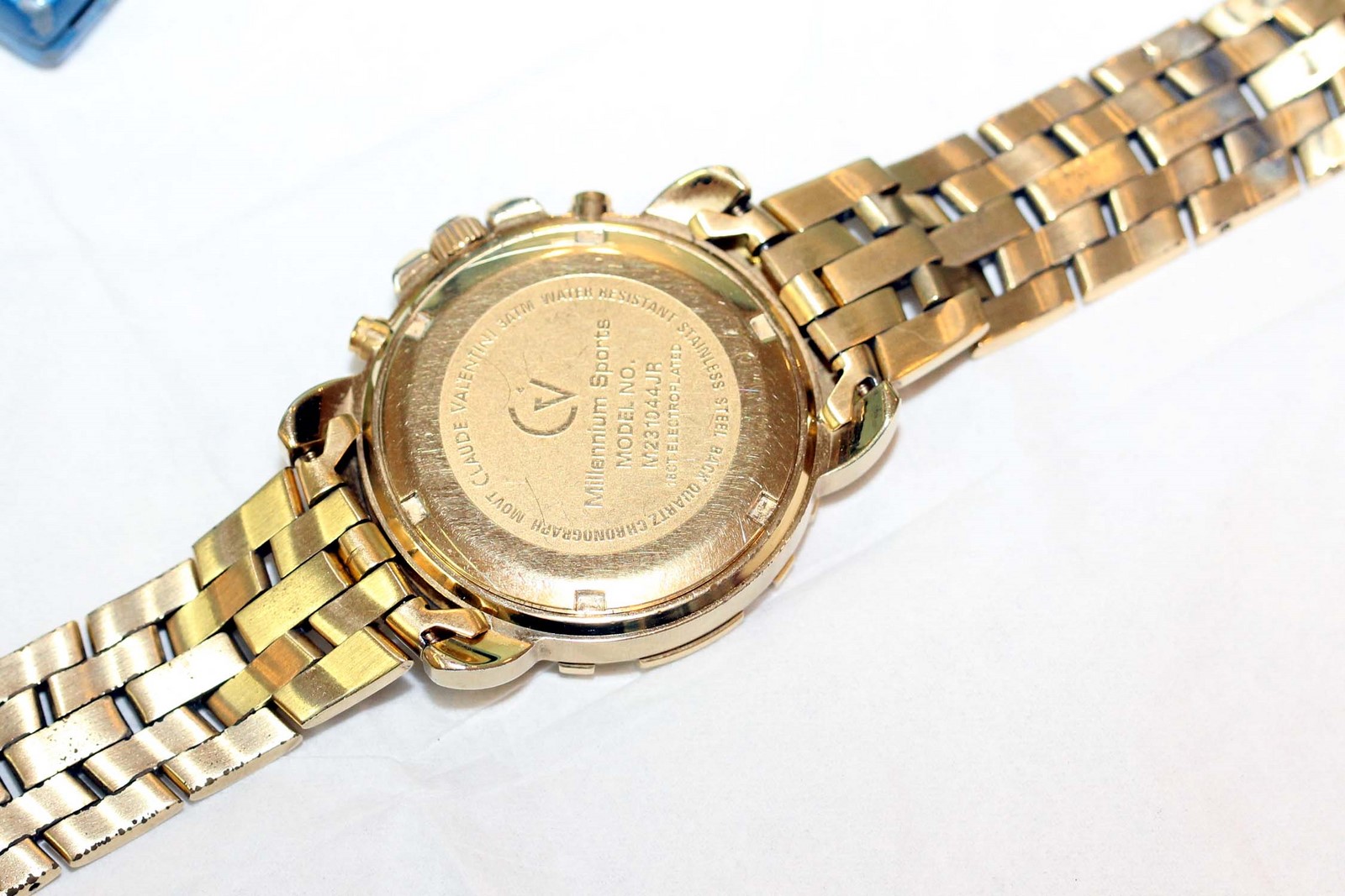 Das Gehäuse dieser Quarzuhr hat einen verschraubten Boden, also einen Boden der aufgedreht wird.
