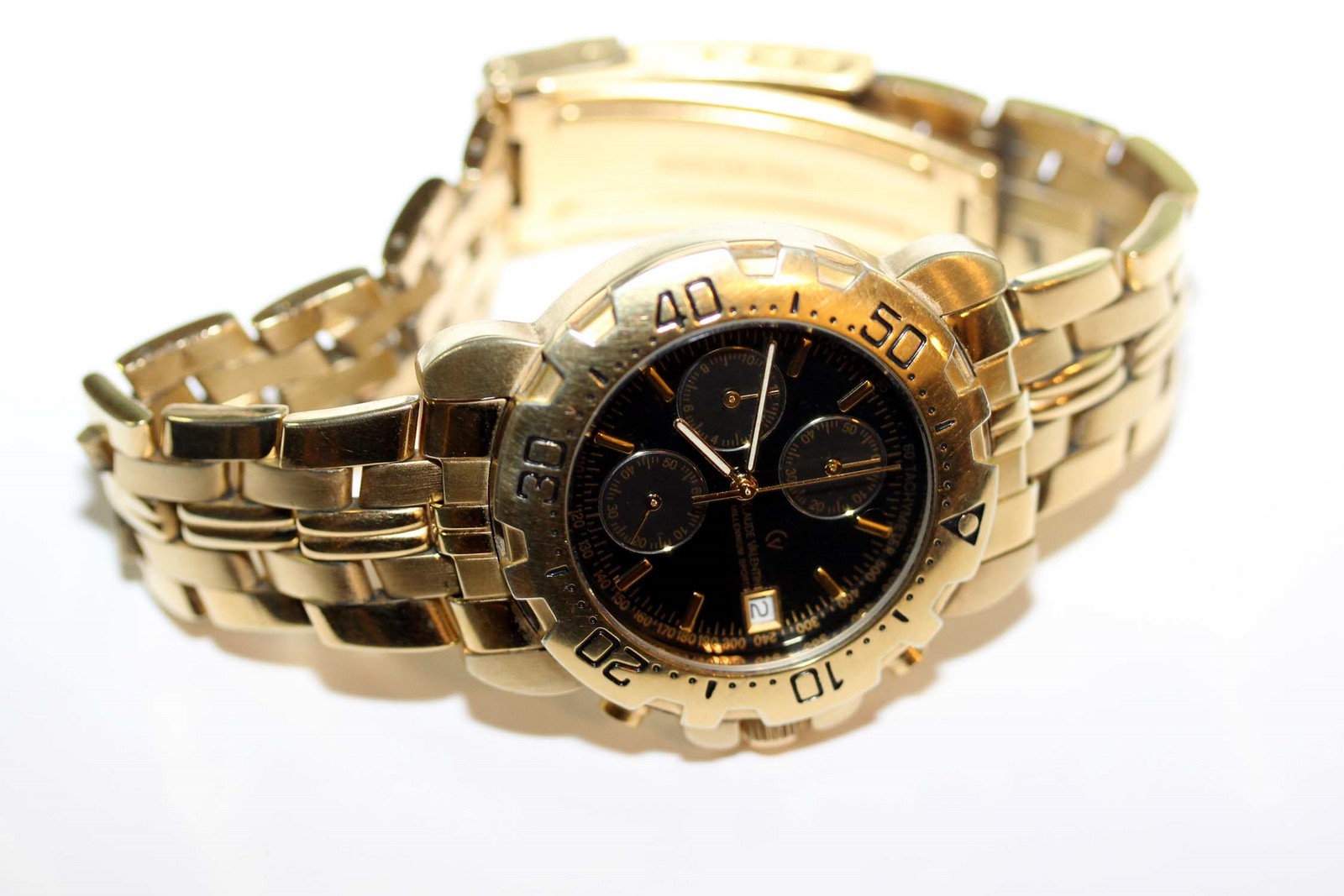 Bei einer meiner Lieblingsuhren war ein Batteriewechsel notwendig. Es ist eine Armbanduhr, eine Quarzuhr mit einem verschraubten Boden. Weiterhin hat sie eine Zusatzfunktion, die es gestattet, einen Sekundenzeiger unabhängig von dem Sekundenzeiger der Zeitanzeigen zu starten, zu stoppen und wieder in seine Ausgangsposition zu bringen. Die Krone der Armbanduhr, das Einstellrad zum Zeigerstellen und Korrektur der Datumsanzeige, ist verschraubt. Verschraubt heißt, dass die Krone zum Schutz mit dem Gehäuse der Uhr verschraubbar ist. Weiterhin hat die Uhr eine drehbare Lünette.
