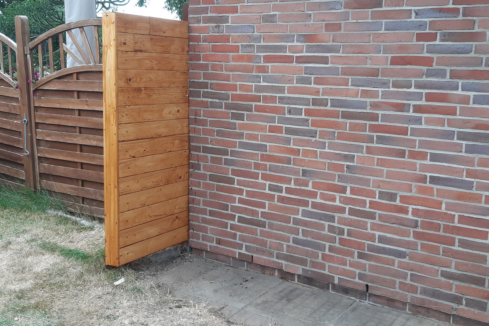 - Ich habe den Aufstellort für das Außengerät vorbereitet. Dazu habe ich dass dort gelagerte Holz entfernt und eine Wetterschutzwand repariert.