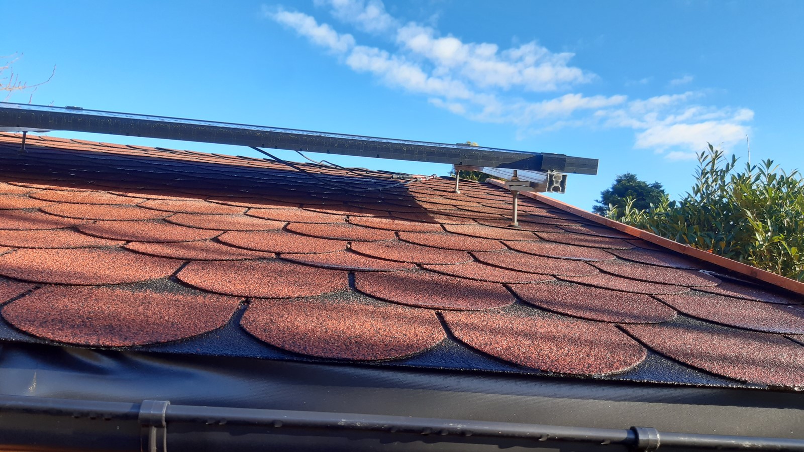 Im September 2022 habe ich auf dem Dach eines Gartenhauses zwei Solarzellen für eine Photovoltaikanlage-Inselanlage (PV-Inselanlage) montiert. Weitere Komponenten habe ich innerhalb des Garenhauses installiert. Die PV-Inselanlage habe ich selbst geplant. Die Montage der Solarzellen auf dem Gartenhausdach habe ich selbst durchgeführt. Um den Solarstrom nutzen zu können wurde eine Leitung (Erdkabel) vom Gartenhaus in unser Haus verlegt.