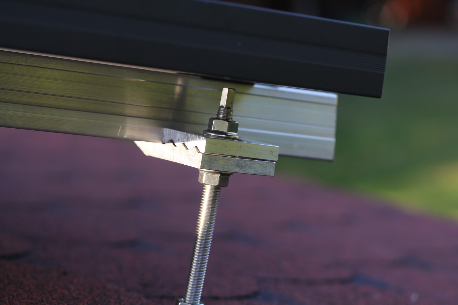 Die PV-Module werden auf dem Montageschienen mit Modulklemmen befestigt.