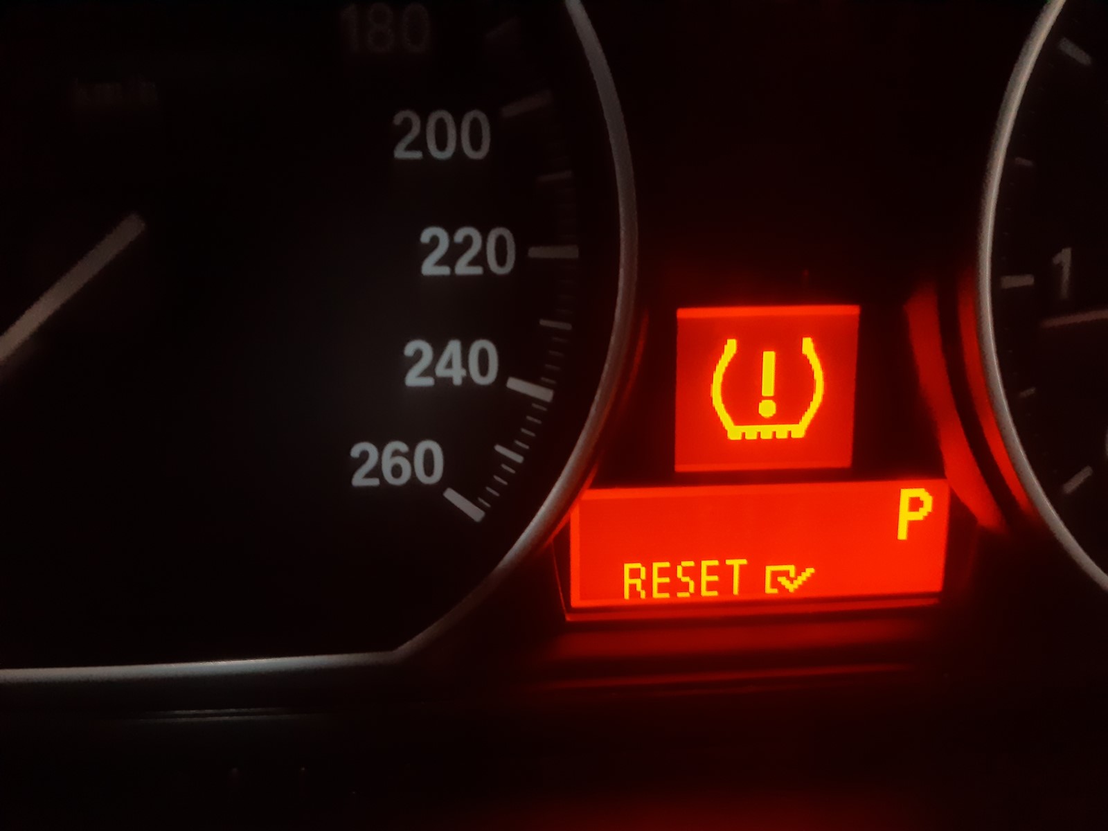 Meine Frau war mit ihrem 1er BMW (Typ 1K2, Variante UA71, Baujahr 2010) unterwegs. Plötzlich leuchtete die Warnanzeige und es war ein Reifensymbol mit einem Ausrufezeichen zu sehen. Es war auch ein akustisches Signal zu hören. Das Reifensymbol deutet auf eine Reifenpanne hin.