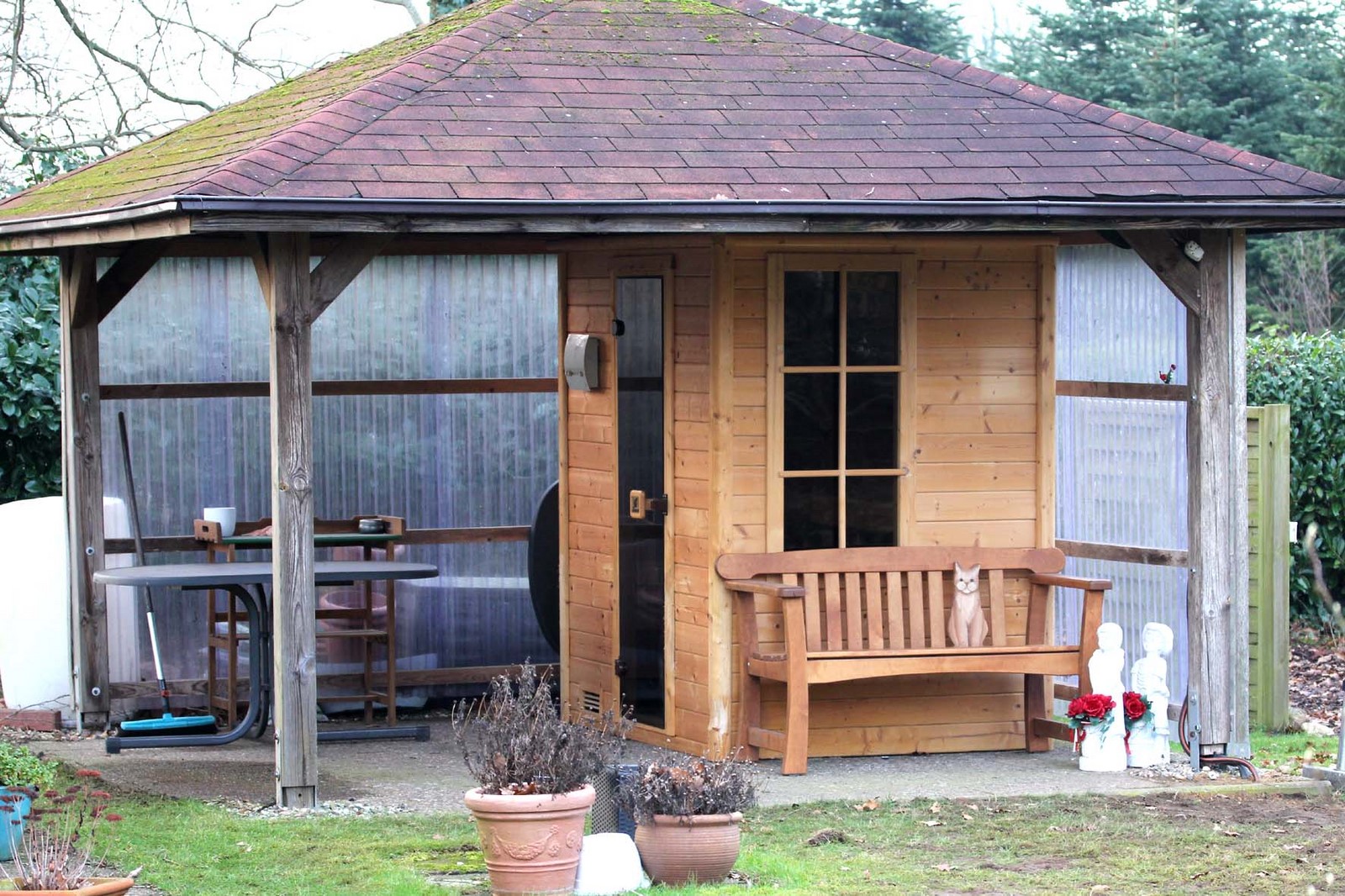 Schon beim Aufbau der Sauna im Jahr 2007 hatten wir die Idee, die Sauna im Garten aufzubauen. Damals stand aber noch kein Gartenhaus dafür zu Verfügung. Mittlerweile haben wir einen Pavillon im Garten unter dem die Sauna gut platziert werden konnte.