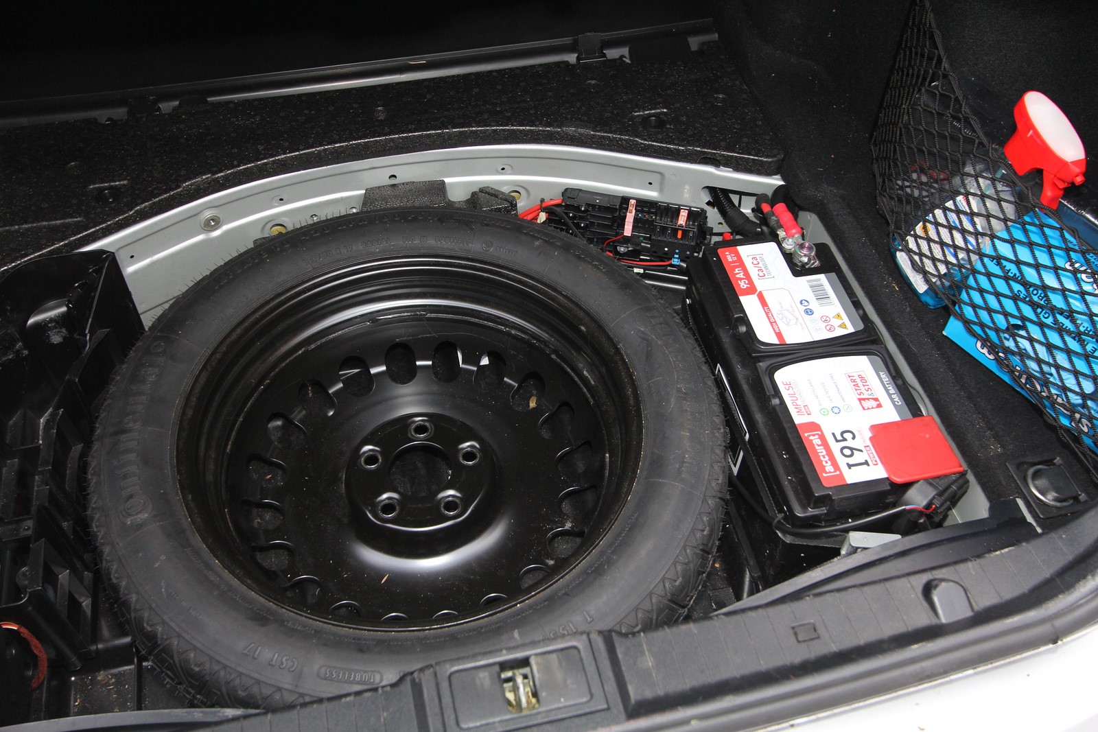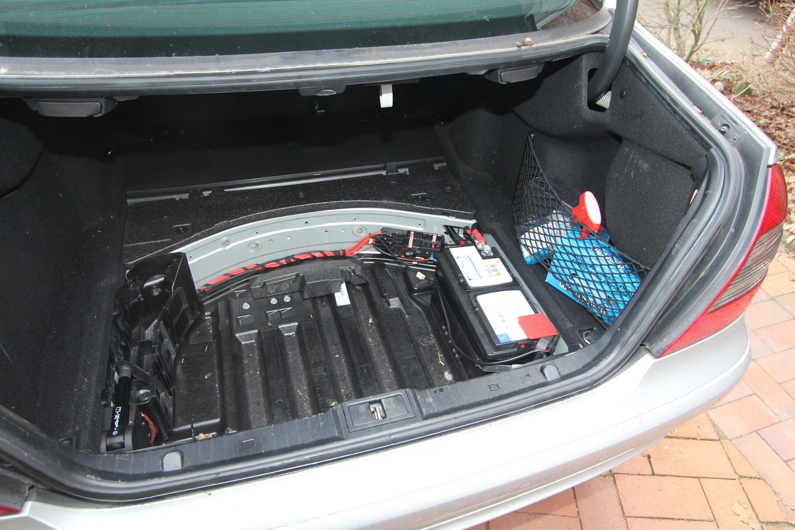 Ich kontrollierte und reinigte die Stellfläche im Kofferraum für die Batterie.