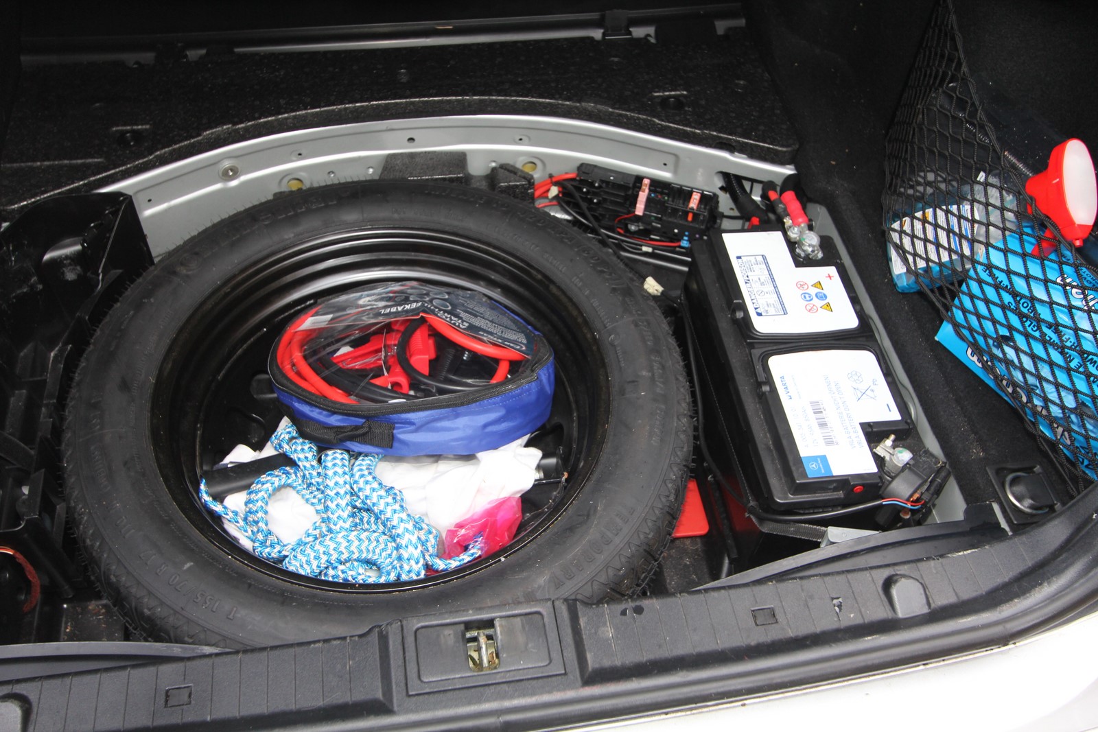 Dann habe ich das Reserverad und das Bordwerkzeug wieder hineingelegt.