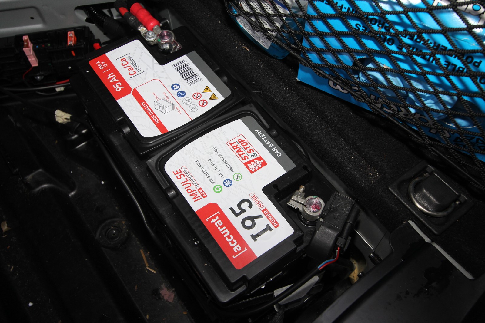 Die Autobatterie ist hinten im Kofferraum eingebaut.